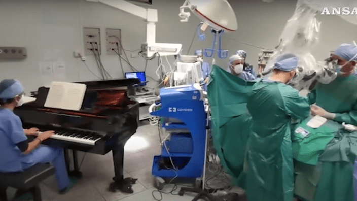 Le musicien et biologiste moléculaire Emiliano Toso a joué pendant les quatre heures qu’a duré l’opération. Il s’agissait d’une expérience visant à observer l’activité cérébrale d’un patient sous anesthésie générale. Celle-ci a démontré de manière évidente que la musique avait été entendue durant l’opération.