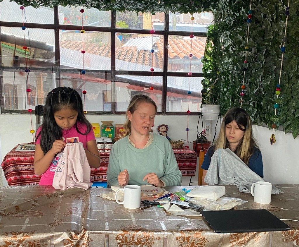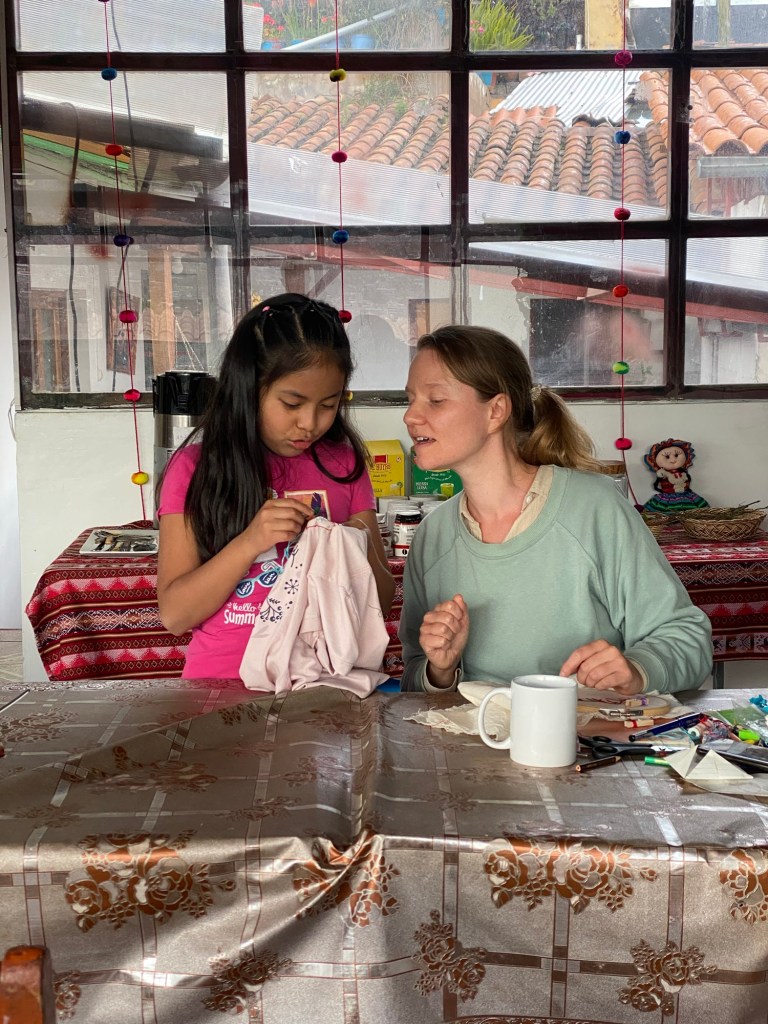 J’ai échangé quelques paroles avec les tisserandes, initié deux jeunes filles à la broderie et partagé des histoires avec des créatrices et artistes de Cusco. Il faut dire que dans le quartier de San Blas où nous résidions, l’artisanat est mis à l’honneur.