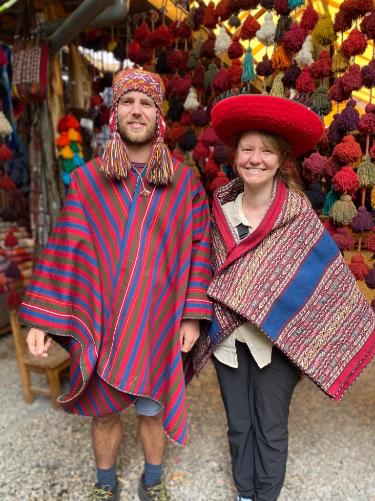 Fini les moto-taxis, les maisons sans vitre et les routes en terre. Les chiens errants ont plus que bonne mine ici, il y a l’option eau chaude dans les douches (aléatoirement). On dépose des taureaux sur les toits des maisons pour porter chance à leurs habitants, on fait sauter du pop corn dans la rue, on tisse des bracelets et des portes bonheurs sur les places, les trottoirs. Les lamas et les alpagas sont promenés en laisse ou, tels des bébés, dans les bras des femmes habillées de mille couleurs.